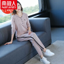 南极人轻奢新品新款冰丝针织长袖运动休闲套装卫衣女长裤薄款宽松连帽时尚两件套 粉色 XL(建议120-130斤)