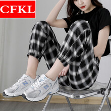 CFKL【特价捡漏】今年流行的黑白格子裤女夏季薄款萝卜裤小个子套装女裤休闲新款哈伦裤子爱尚依服 经典大格子九分裤 29