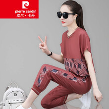 ℘皮尔卡丹品牌女装ℑ甄选轻奢卫衣运动套装女小个子夏季2021年宽松大码休闲薄款减龄显瘦两件套针织 豆沙 2XL(建议120-130斤)