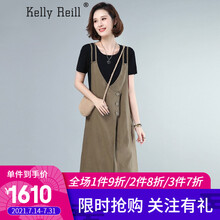 凯利蕾莉(KELLY REILL)棉麻背带裙吊带套装连衣裙2021夏装新款通勤宽松休闲长裙 卡其色 M