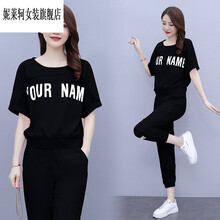 NILAIKE轻奢女装 夏季薄款时尚夏装搭配套装女年春夏季新款潮大码休闲运动服减龄两 黑色 M(建议100斤以下,品质不起球)