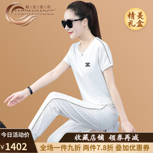 MORNYMOSS品牌轻奢运动套装女士夏季薄款时尚刺绣圆领短袖T恤运动裤透气宽松休闲套装跑步服两件套 白色 M 80-98斤