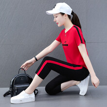 夏季新款短袖七分裤套装休闲运动两件套女 红色 M