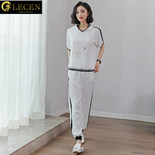 LECEN乐岑轻奢品牌运动服套装女夏季2021年新款时尚洋气减龄时髦休闲两件套薄款 白色;M