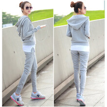 支持国货2021夏新韩版休闲女装跑步运动服套装女春秋卫衣三件套棒球服 灰色(三件套) L