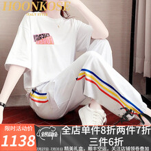 韩酷森(HOONKOSE)轻奢品牌运动套装女T恤春夏新款女装休闲夏天百搭时尚两件套裤子 白色一套 L