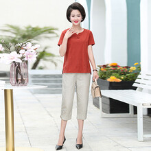 俞兆林 中老年女装妈妈装禾领短袖T恤+七分裤套装女YTDZ203421红色XL(90-105斤)