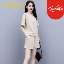 步诺客(PONOCO)轻奢运动套装女休闲2021夏款新宽松短袖短裤晨跑锻炼跑步幼师两件套棉 卡其 L