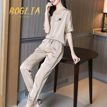 伯格利亚BOGLIA轻奢品牌运动套装女2021年新款夏装搭配大码胖休闲卫衣裤子休闲两件套女 杏色 S