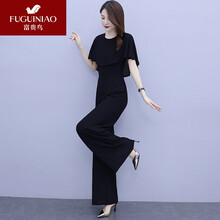 富贵鸟【高端品质】职业套装女2021年新款夏小个子网红炸街时尚阔腿裤假两连体裤 黑色 S(90斤以下)