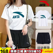 安踏运动套装女夏2021夏季新款服饰潮流韩版透气运动休闲服圆领半袖短袖t恤跑步健身衣显瘦高腰五分短裤 -1纯净白(两件套) L/170