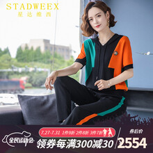 星达维西(STADWEEX)轻奢品牌运动套装女夏装短袖休闲时尚中老年宽松针织冰丝两件套薄款 橘色 L