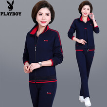 花花公子大码中老年女装春装运动服套装女2021春秋新款高端品牌妈妈装外套中年人洋气上衣休闲卫衣三件套 SYNS815-宝蓝【三件套】 2XL(建议120-130斤左...