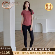 MORNYMOSS品牌轻奢瑜伽服运动套装女夏季新款专业时尚健身跑步运动套装薄款速干透气瑜伽两件套 633朱红色短袖+638黑色长裤 S