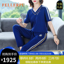 菲乐普(FELLERPU)轻奢品牌运动套装女2021夏季新款v领冰丝针织宽松休闲女士两件套 蓝色 L