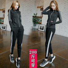 豹迹(BAOJEE)健身房运动套装女休闲大码胖mm200斤瑜伽服长袖夜跑步宽松速干衣 黑色【外套+裤子】 4XL