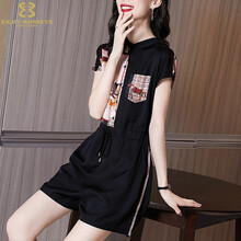 EIGHTMONKEYS轻奢品牌夏装新款时尚休闲运动风名媛减龄显瘦短袖连体连衣裤洋气套装2021女装 黑色 S
