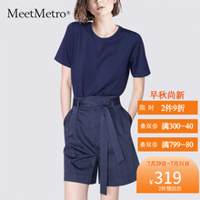 MeetMetro玛依尔T恤短裤套装女2021夏新款气质两件套洋气减龄裤装 藏蓝色 【少量现货-加购下单优先发】 XL