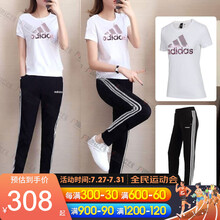 TZ 阿迪达斯官方网女装运动套装两件 2021新款运动服时尚居家服健身户外圆领短袖T恤 运动收口长裤 优雅/紫标/DV3033+GP7131 XL/170