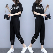 BS 套装女 夏季休闲运动套装女宽松韩版短袖时尚潮流两件套裤 黑色 2XL