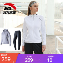 ANTA安踏女装运动套装新品女士连帽开衫外套时尚休闲针织长裤两件套 雪花白-1 M(女适合165)