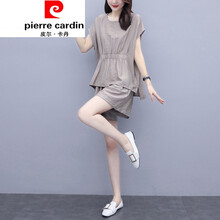 皮尔卡丹轻奢品牌棉麻短裤套装女夏装2021年新款休闲时尚小个子搭配气质洋气两件套套装针织 灰色 M