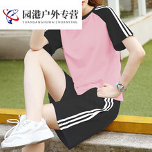 休闲运动服套装女夏季两件套跑步中考体育短袖考试五分短裤 粉红色 一套 2XL(131--145斤)