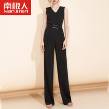 南极人轻奢高档女装 黑色高腰垂坠感连体裤2021夏季新品女装气质无袖修身套装连衣裤潮 黑色 L
