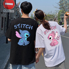 MDlila 七夕礼物情侣装夏季短袖t恤2021新款休闲百搭套装潮韩版宽松衣服一男一女半袖班服定制 史迪仔对望 男黑+女白 男XL+女L