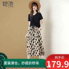 她池2021夏季时尚新款女装通勤休闲短袖T恤搭高腰A字半身裙套装 黑色 M