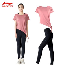 李宁瑜伽服套装女宽松速干透气健身跑步休闲外穿短袖长裤二件套AAGR006-3 新胭脂粉 S码