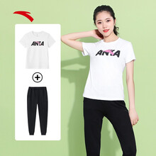 【两件套】安踏运动套装女2021新款跑步透气短袖长裤两件套潮官方旗舰 7161纯净白 175/XL