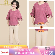 EIGHTMONKEYS轻奢品牌运动套装女夏妈妈中年人时尚女装短袖T恤中老年阔太太休闲两件套2021 红色(上衣+裤子) L(建议90-105斤以内)