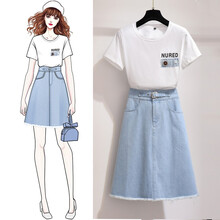 洁莉娅连衣裙2021夏季新款女装韩版气减龄显瘦两件套套装裙牛仔半身裙休闲套装女849 图片色 L建议110斤-120斤