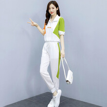 澄康高档时尚潮流夏天时尚运动休闲裤套装女21年夏装新款中袖宽松休闲减龄两束脚裤子 白色 XL