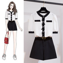 洁莉娅夏季连衣裙2021新款夏装韩版蝴蝶结衬衣两件套套装裙泡泡袖衬衫小众女高腰休闲显瘦套装女953 图片色 M建议100斤-110斤