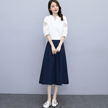 ZZ&FF 连衣裙女2021夏季新款大码职业套装裙女网红炸街休闲时尚显瘦款式上衣亚麻半身裙女 白色 M