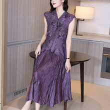 三宅·一生同款褶皱三宅褶皱气质V领套装女夏2021新款时尚女装小个子气质休闲两 紫色 均码
