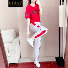 CHIAY轻奢高端品牌运动套装女时尚夏季新款宽松短袖嘻哈休闲工装裤两件套潮 红色套装 S