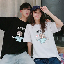 MDlila 七夕礼物情侣装夏季短袖2021新款t恤套装潮韩版宽松休闲百搭衣服一男一女半袖班服定制 人潮 男黑+女白 男L+女S
