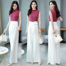 雁皇YESHON品牌夏装2021新款女装气质名媛高腰垂感阔腿裤套装洋气减龄套装长裤 玫瑰紫+白裤 M