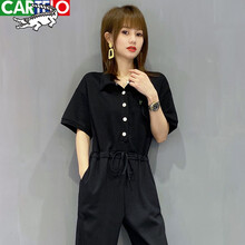 卡帝乐鳄鱼 品牌高端女装 欧洲站女装2021新款欧货潮直筒休闲运动连体裤套装子女春夏季薄款 黑色 9216 L
