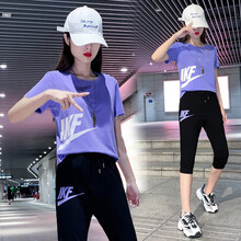 越伦 运动套装女夏季2021新款跑步服女潮牌女装时尚休闲运动服宽松洋气两件套 蓝色 2XL