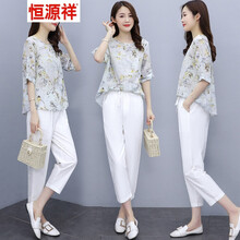 恒源祥专柜轻奢品牌女装2021新款休闲时尚棉麻套装女年夏季小个子气质复古减龄职业两 白色 XXXL