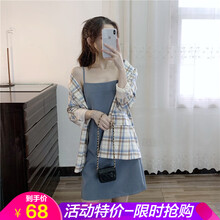 连衣裙女韩版休闲宽松吊带裙子小西装两件套套装裙 吊带连衣裙(调节扣) S