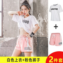 夏季薄款女士运动服套装跑步休闲健身瑜伽宽松显瘦短袖短裤时尚 白上衣+粉短裤 XXL