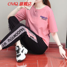 CMQ香港潮牌潮流时尚运动服套装女年夏天新款嘻哈百搭短袖流行宽松 粉色 L