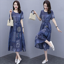 巧减连衣裙女装2021新款夏季洋气遮肚子韩版时尚休闲百搭宽松显瘦贵夫人气质裙子女 藏青色 XL