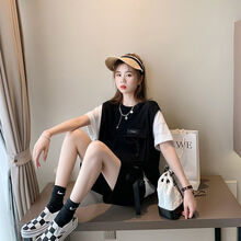 休闲运动套装女夏韩版宽松显瘦个性假两件T恤阔腿裤两件套潮 970#【两件套】黑色 M 建议80斤-95斤