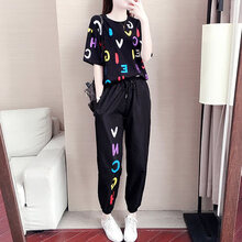 CMQ香港潮牌夏季运动套装两件套女时尚阔腿气质减龄学生运动风休闲套装 黑色套装 XXL